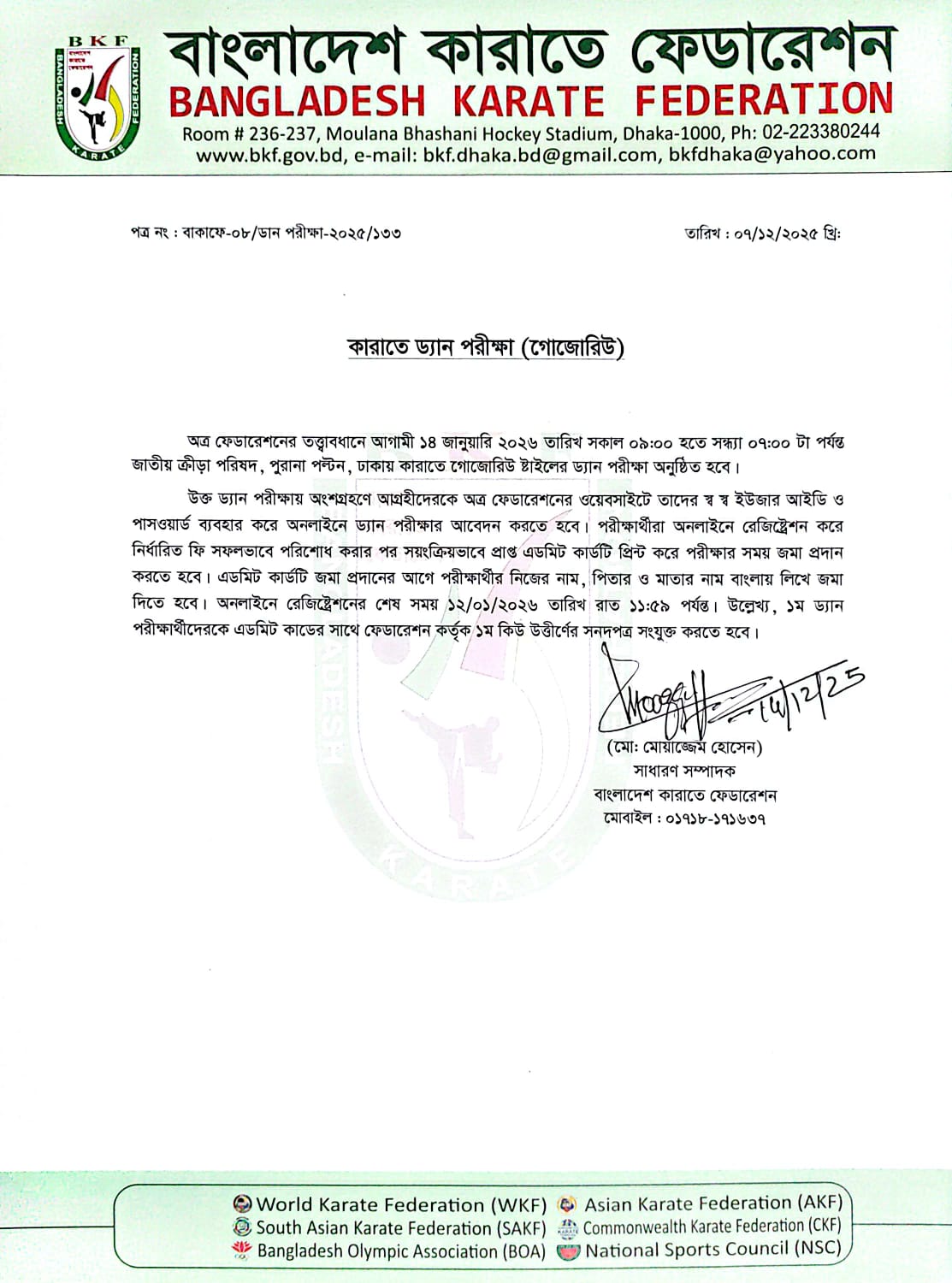 20 January, 2026Dhaka Dan Examination (Gojuryu) 2026/01